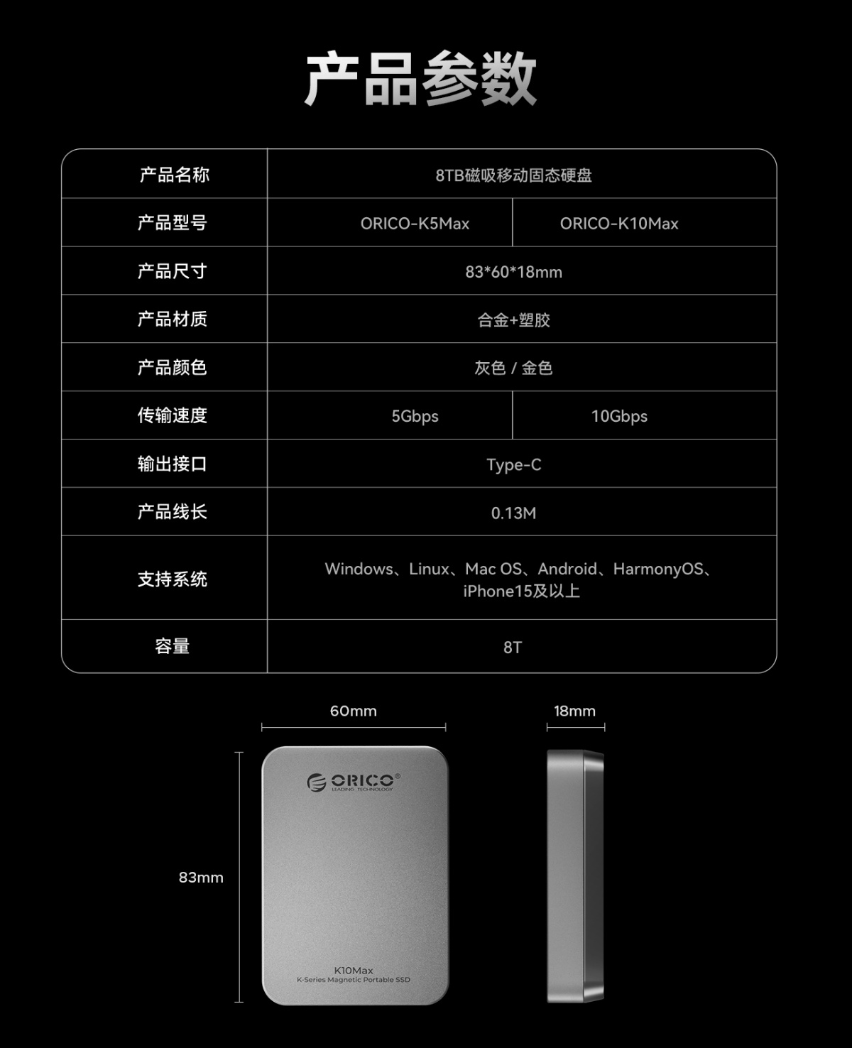 CZ系列20Gbps磁吸移動固態硬盤