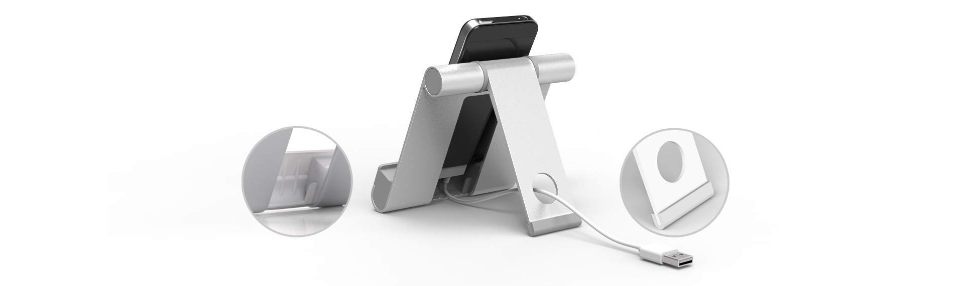 ORICO打破傳統(tǒng)手機(jī)平板支架功能設(shè)計(jì)理念,支架底部帶有空位可容納充電接頭,滿足您多橫放或豎放的使用需求。