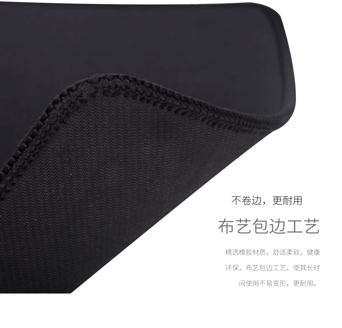 布藝包邊,橡膠紋理,織布結(jié)構(gòu),大面積鼠標(biāo)墊,穩(wěn)固硅膠墊