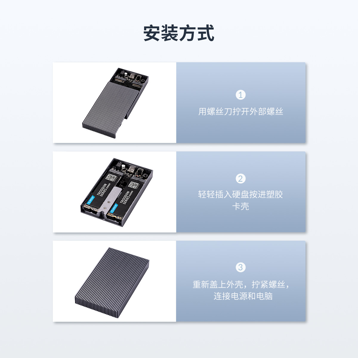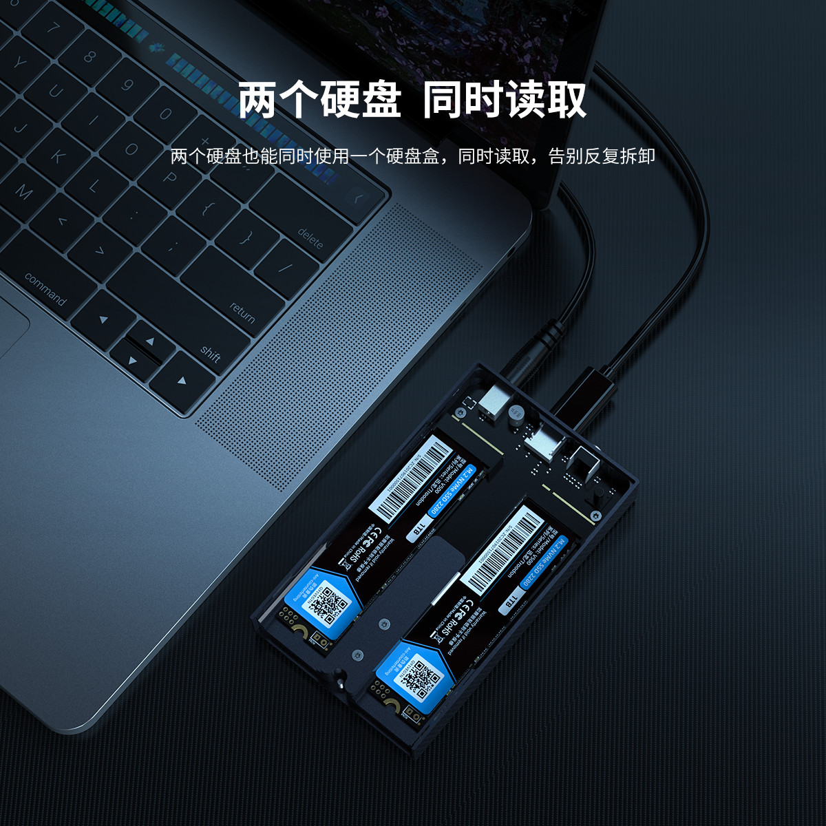 Type-c雙盤位M.2 NVMe硬盤盒,利用條紋散熱棱擴(kuò)大散熱面積,雙盤位4TB