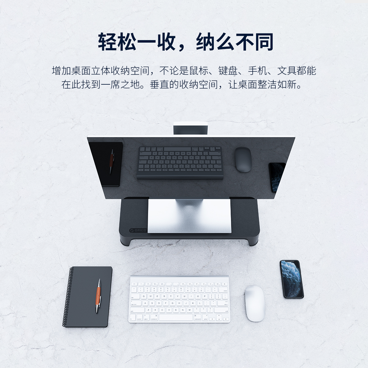 收納鍵鼠|簡約大氣|穩(wěn)固支撐 顯示器抬高8CM 厚實的ABS材質(zhì)打造