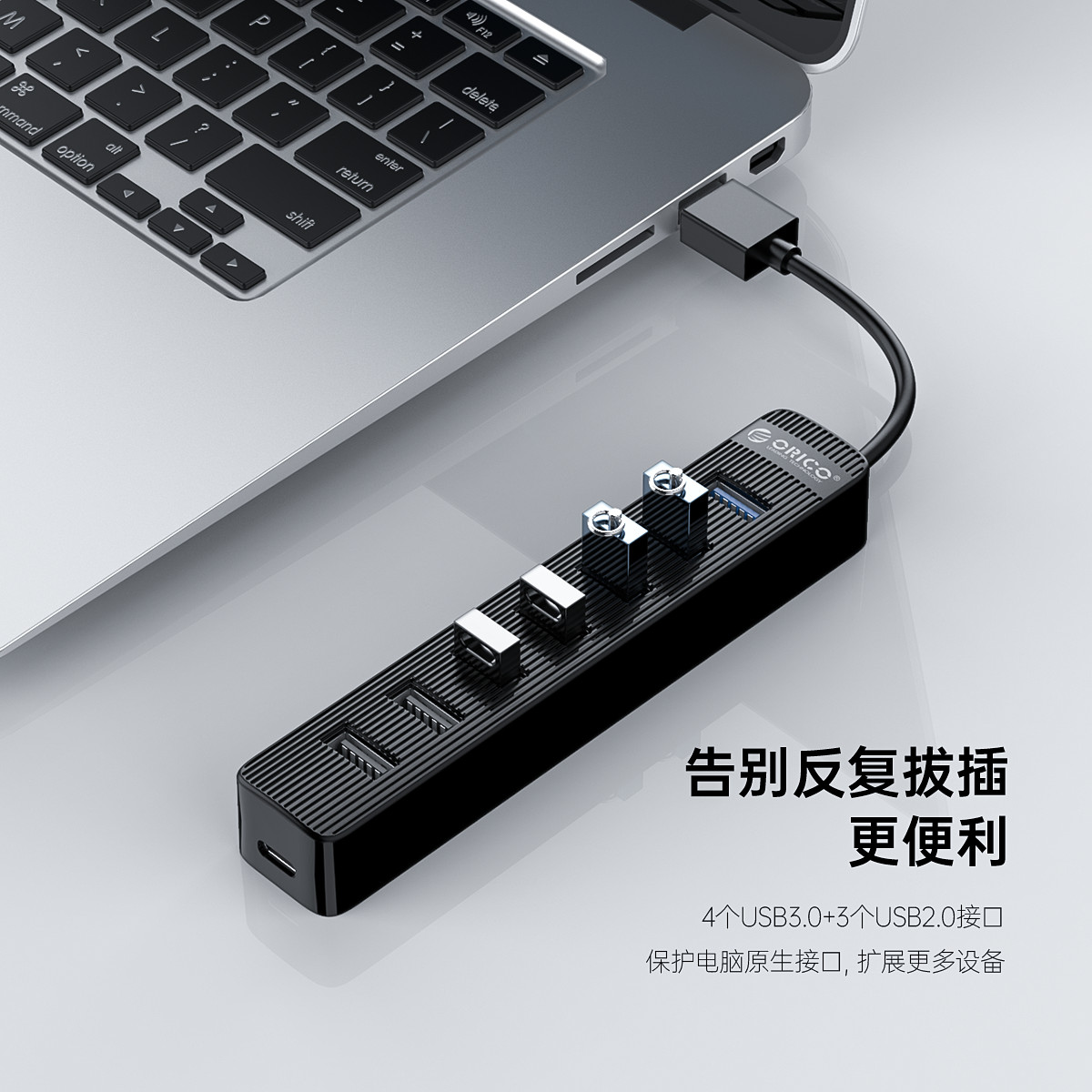 4個USB3.0+3個USB2.0接口,預留10W Type C供電口,可外接電源,防倒流設計