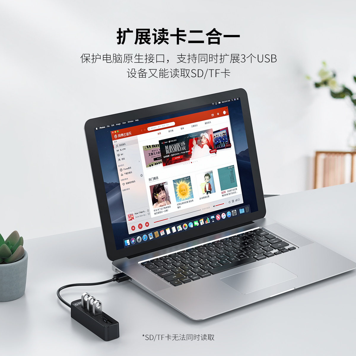 支持同時擴展3個USB設(shè)備又能讀取SD/TF卡,5Gbps傳輸速率,支持2T大容量存儲卡、移動硬盤使用