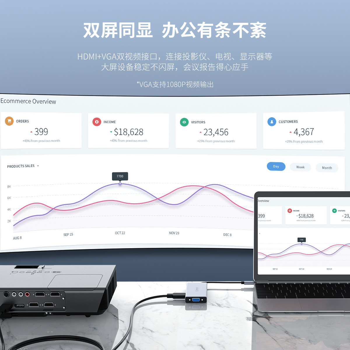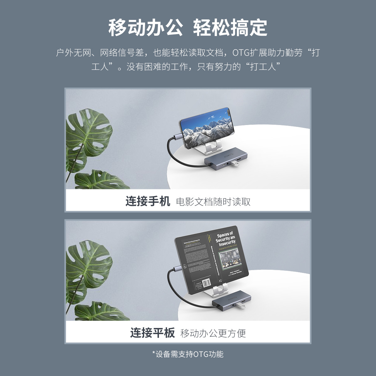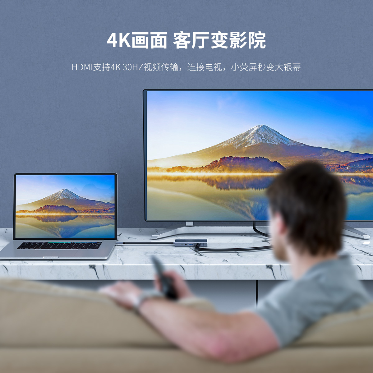 五口擴(kuò)展,USB Type-C口支持PD2.0,HDMI支持4K 30HZ視頻傳輸,HDMI+VGA雙視頻接口,標(biāo)準(zhǔn)的DC3.5MM音頻接口,內(nèi)置數(shù)字音頻編解碼器