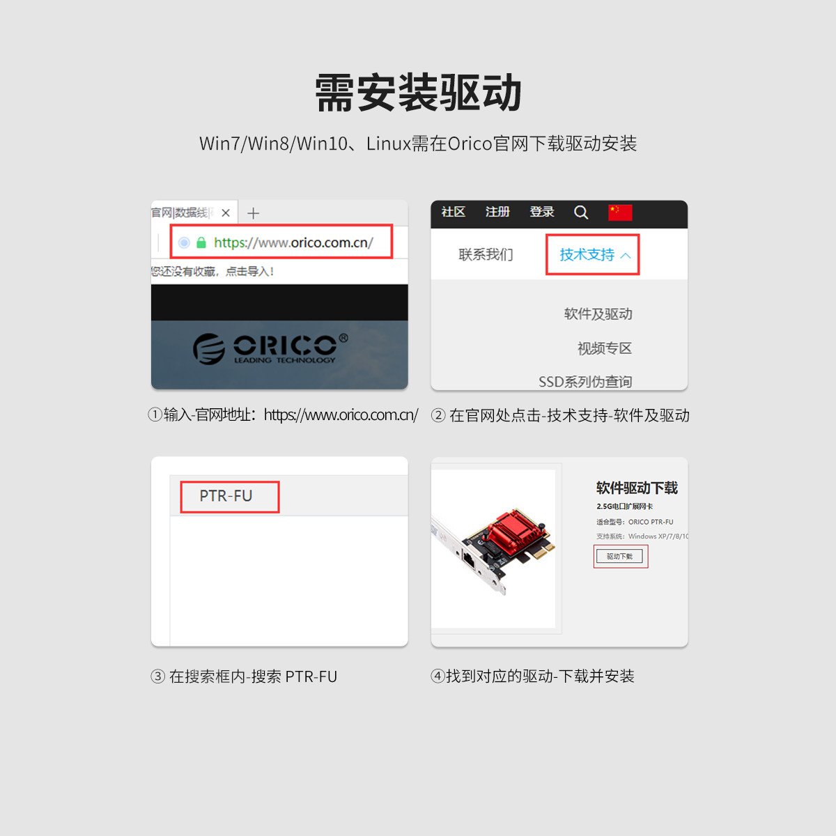 2.5G內置網卡,高速穩定上網,擺脫延遲不卡頓,采用風琴導熱片散熱設計,快速散熱,需在Orico官網下載驅動安裝