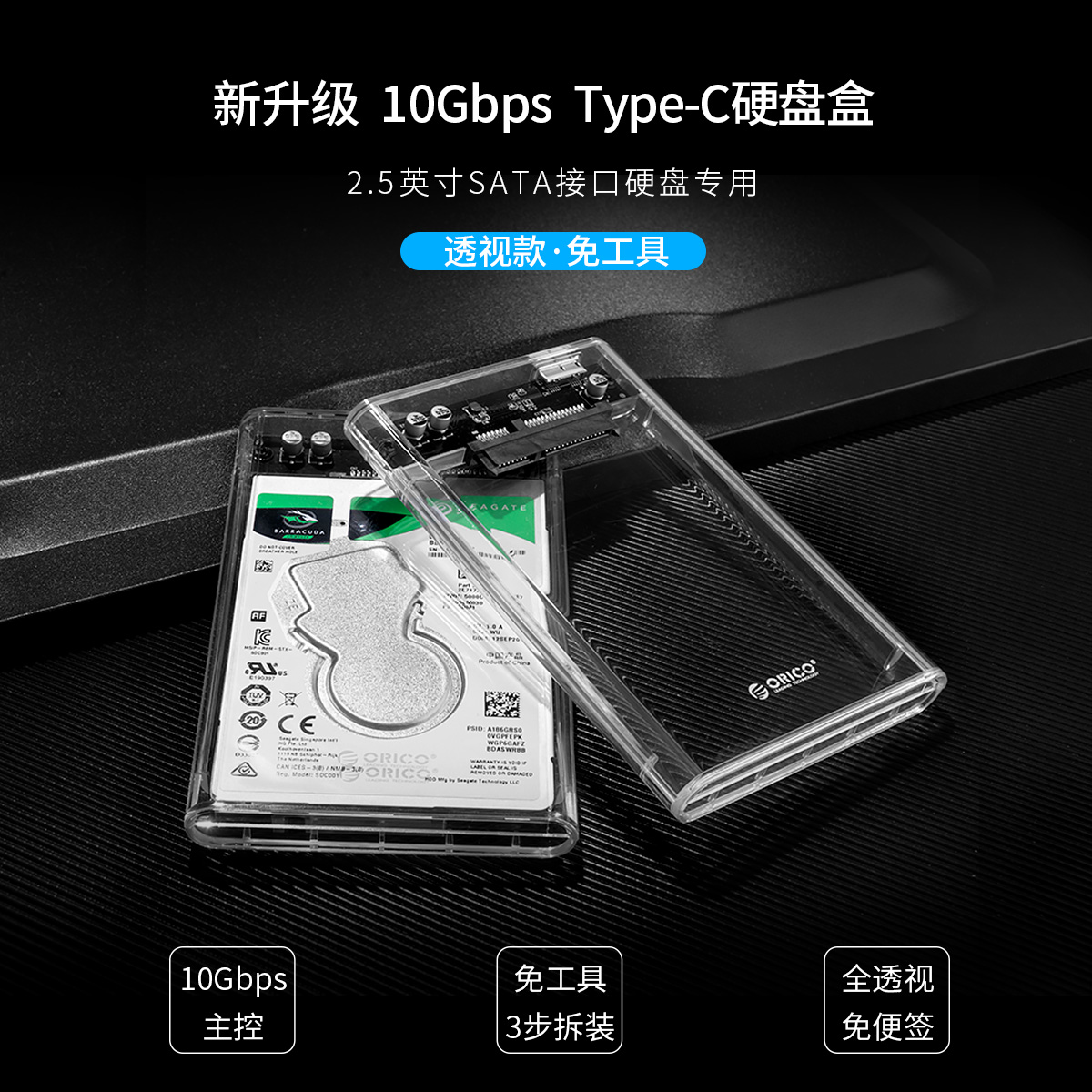 全透視設計,新升級10Gbps高速芯片,Type-C先鋒時代,正反插拔,支持4TB存儲,免工具設計,即插即用