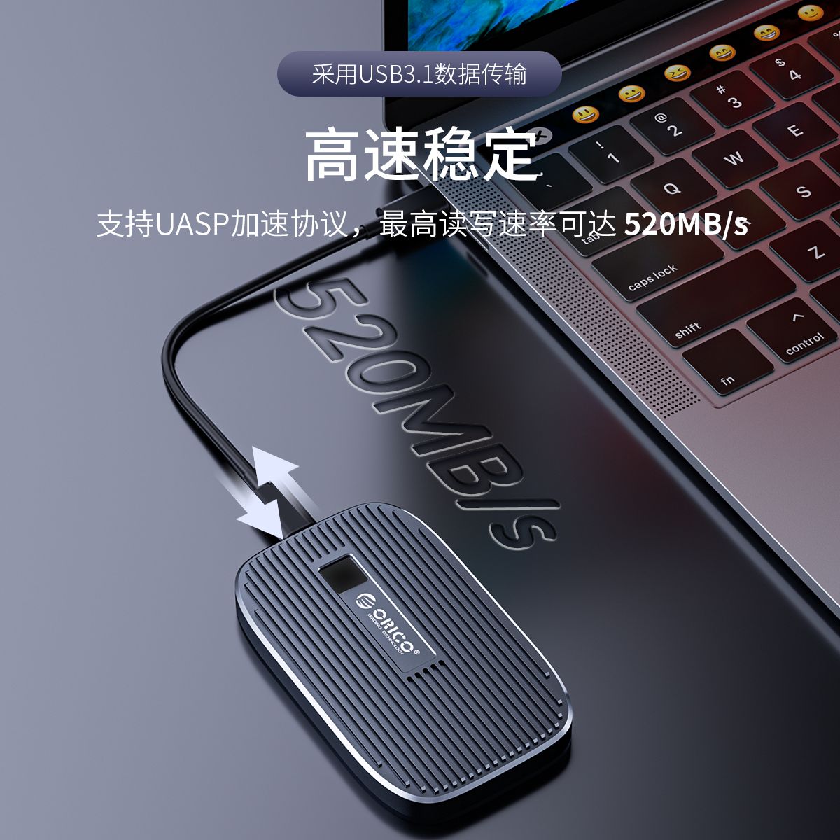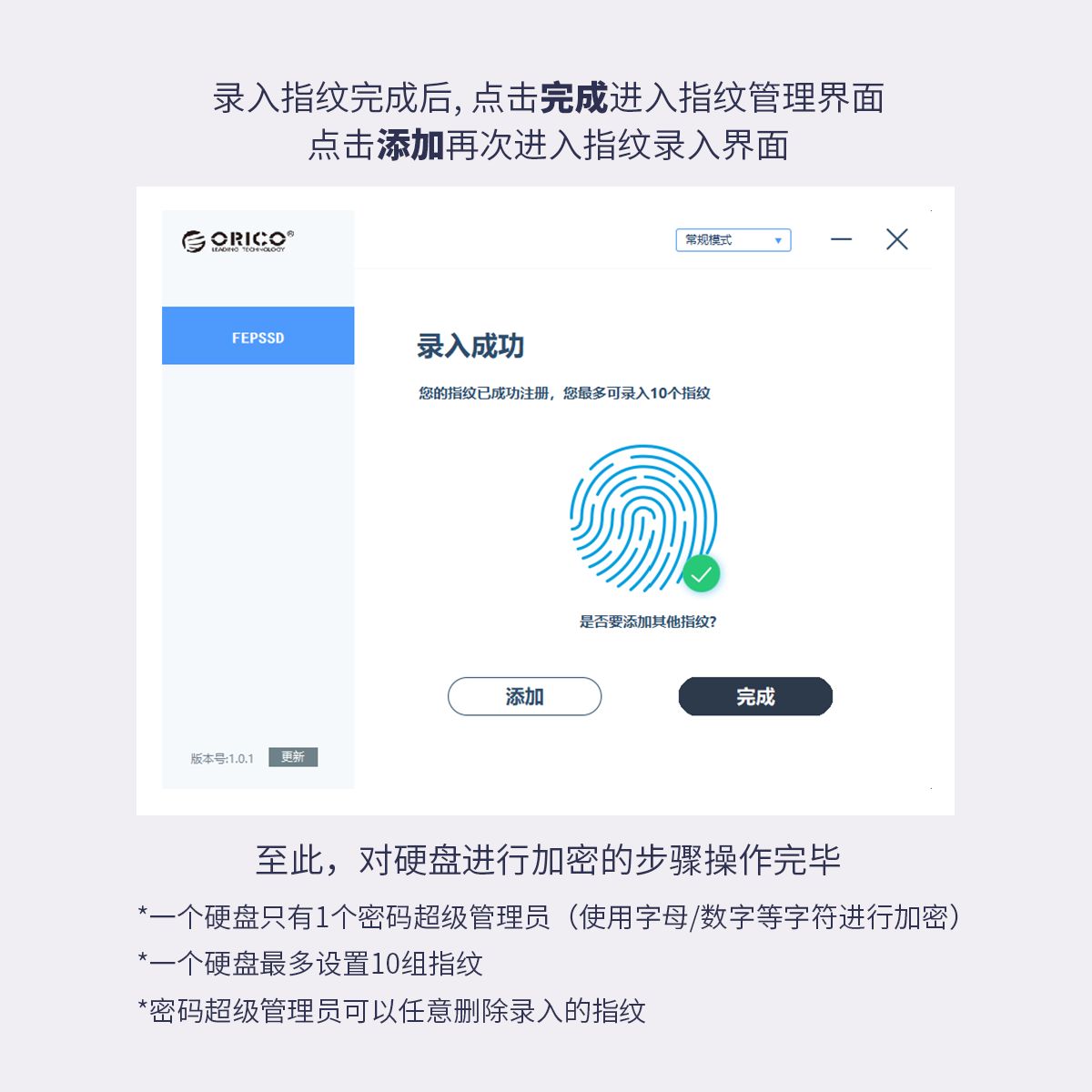 ORICO FEN300指紋加密移動固態硬盤256GB/512GB/1TB USB3.1 Type-C,450MB/s讀寫