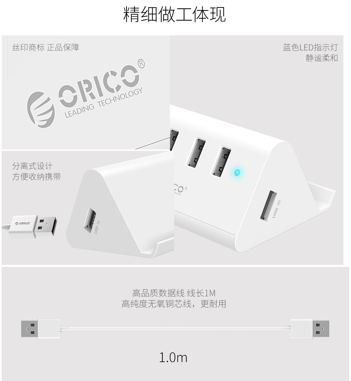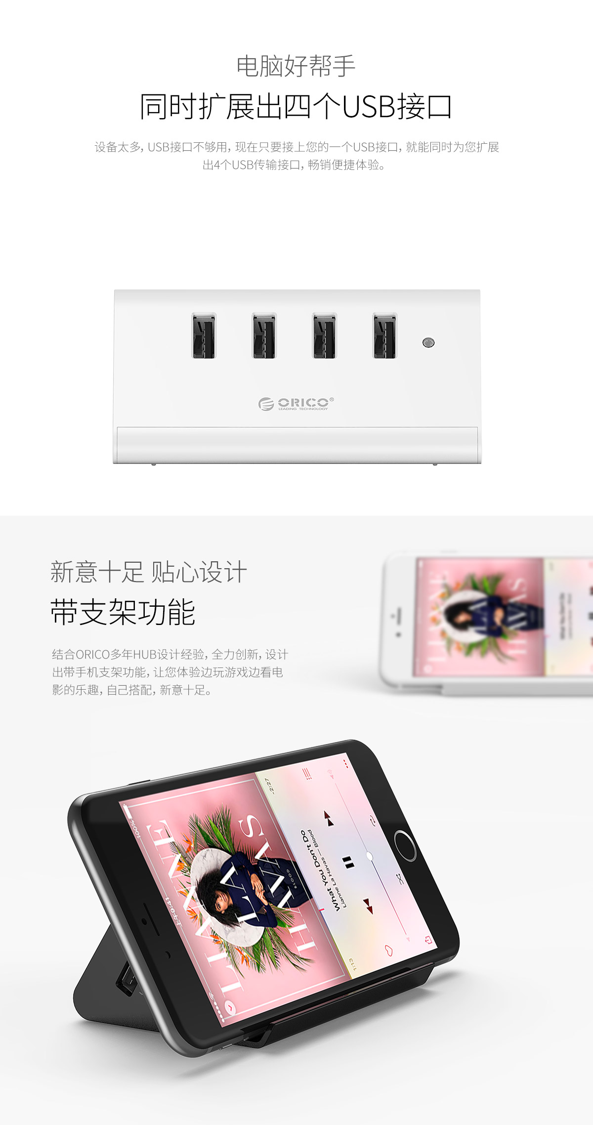 4口USB擴(kuò)展 帶支架功能 ABS耐高溫材質(zhì) 精細(xì)做工