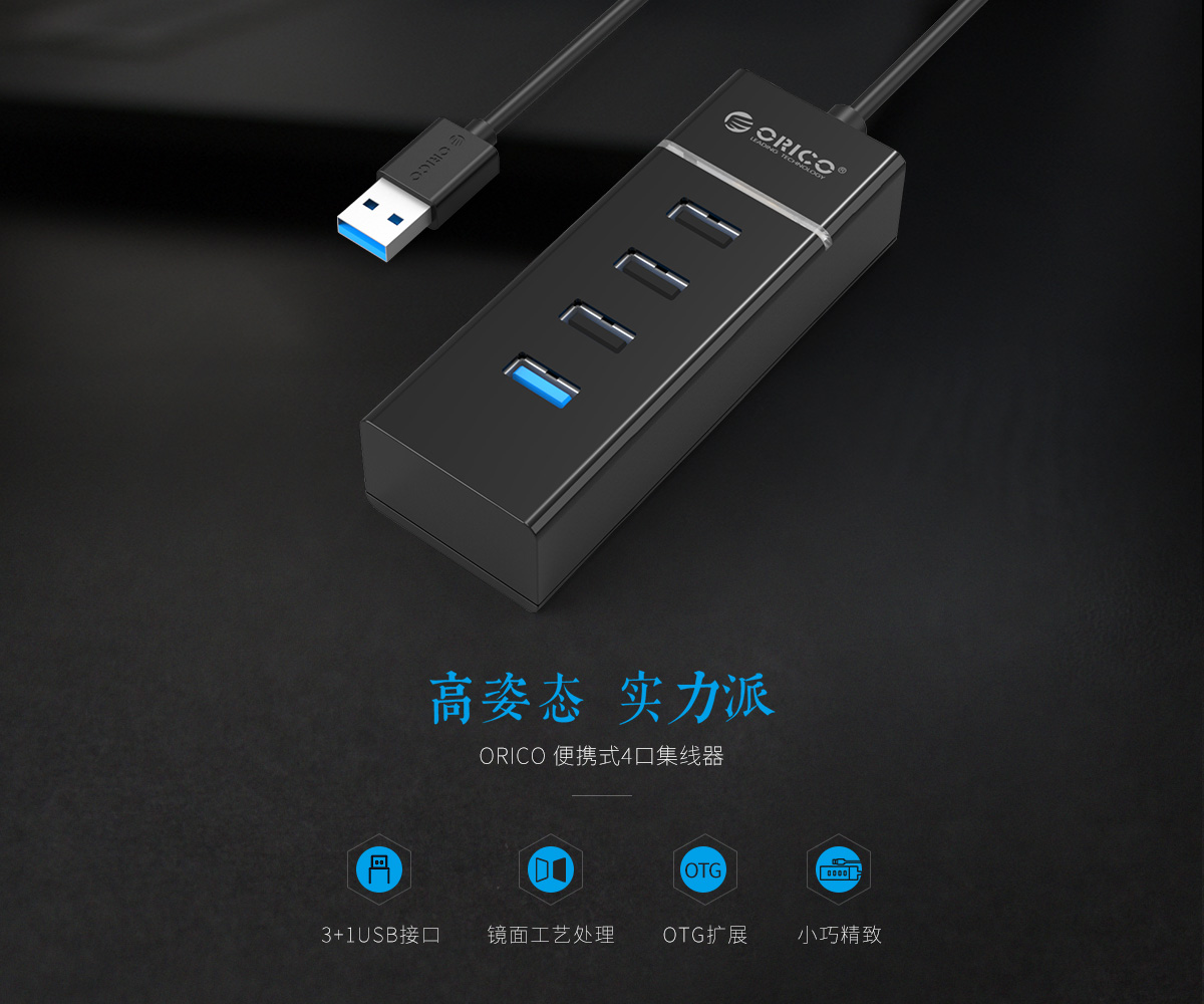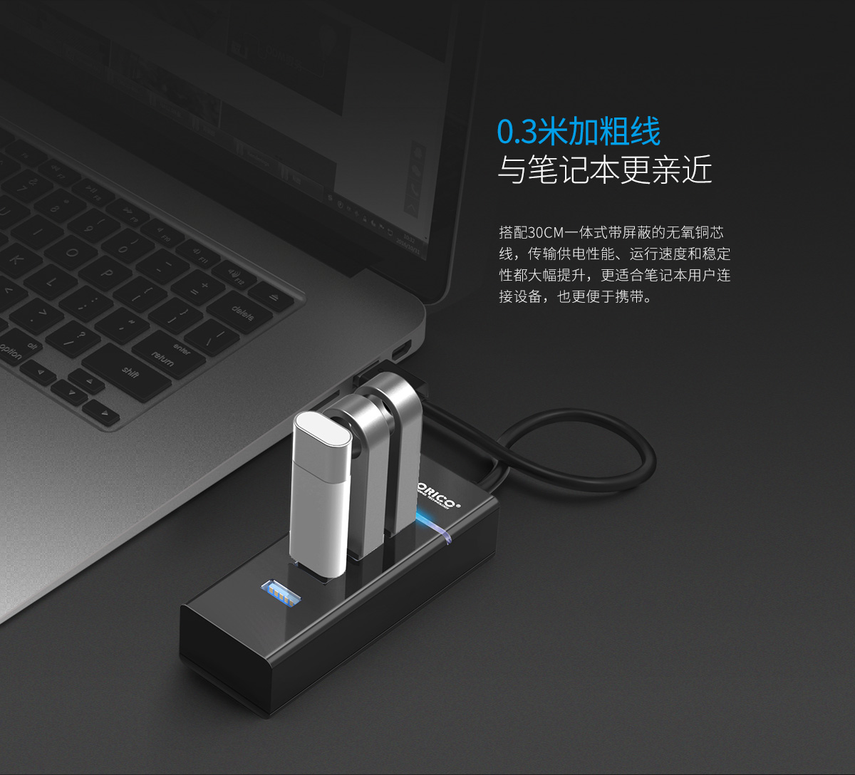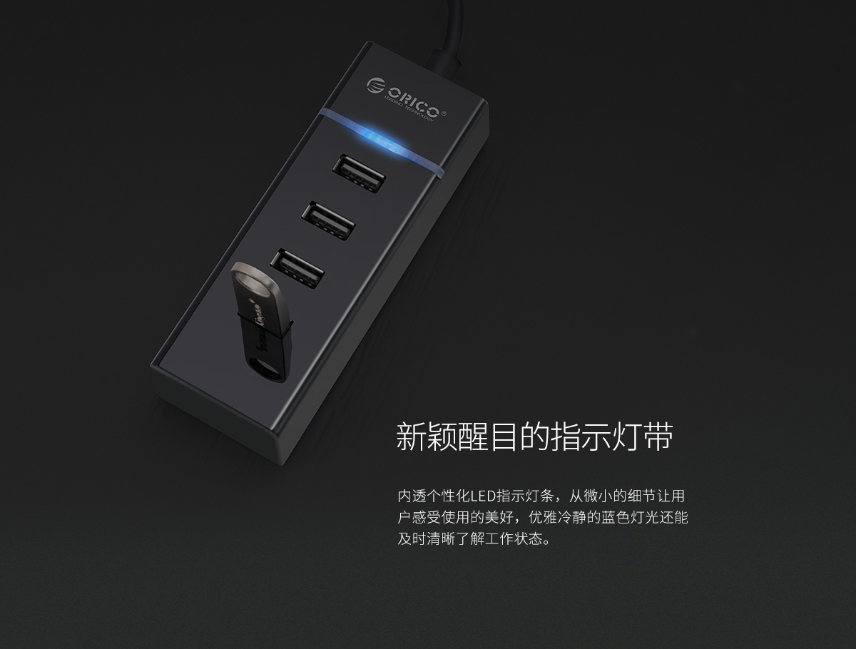 連體設(shè)計 30cm數(shù)據(jù)線長 內(nèi)透LED指示燈 3+1USB接口擴展