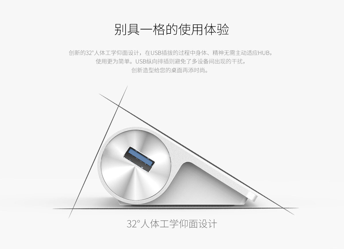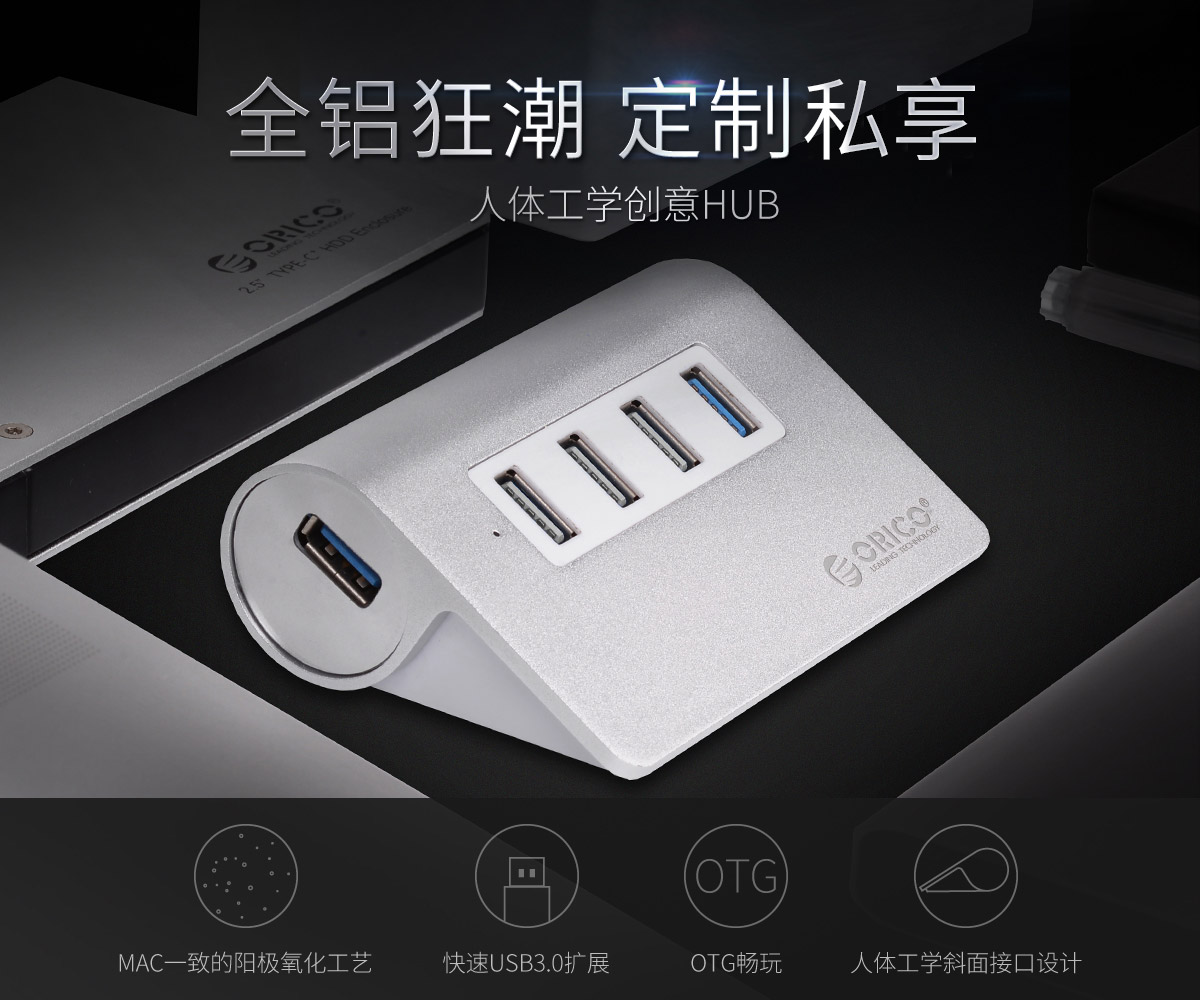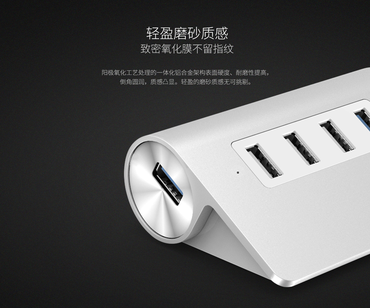 4口USB3.0高速擴展 MAC風格 人體工學斜面設計 全鋁合金材質 RTS5411芯片