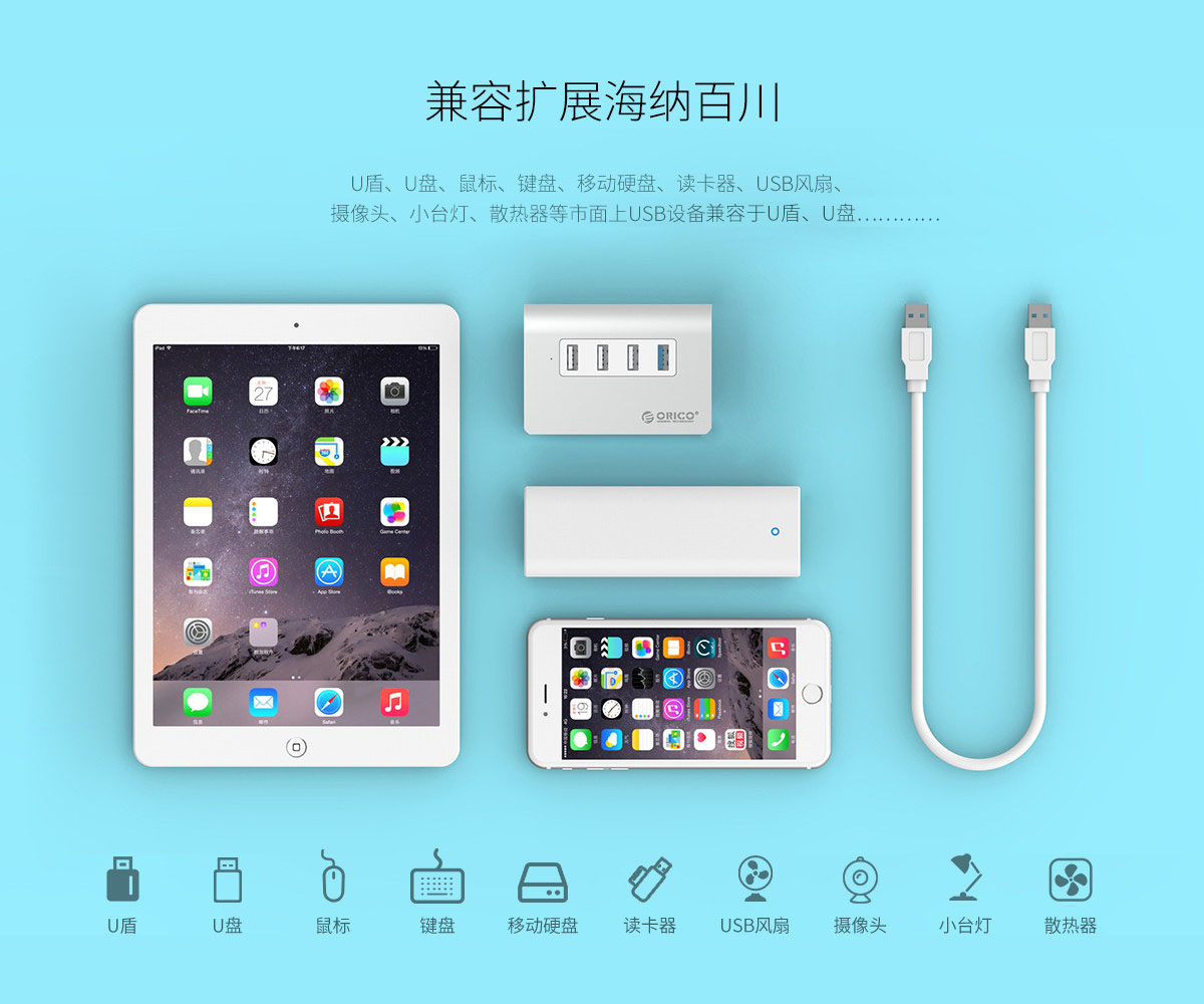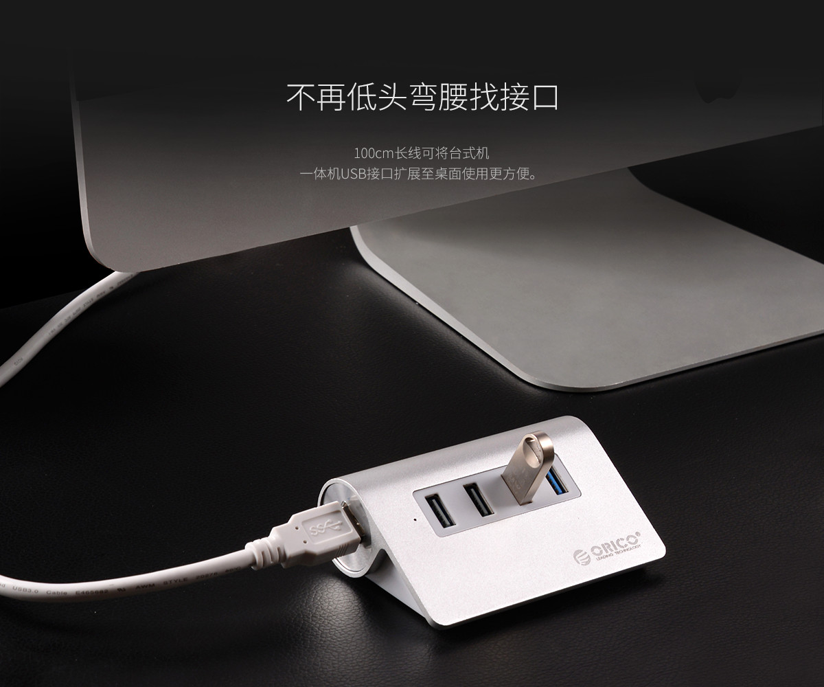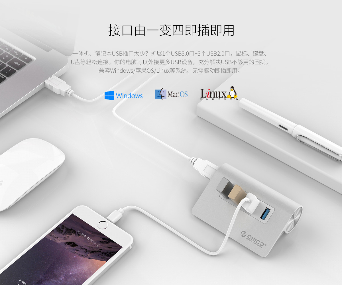 4口USB3.0高速擴展 MAC風格 人體工學斜面設計 全鋁合金材質 RTS5411芯片