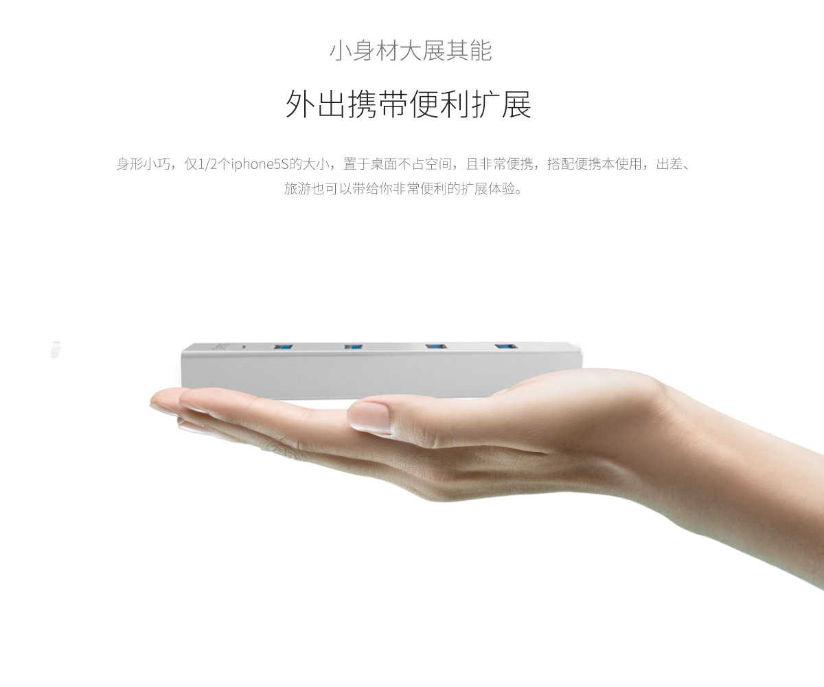 鋁合金4口USB3.0集線器,50cm分離數據線