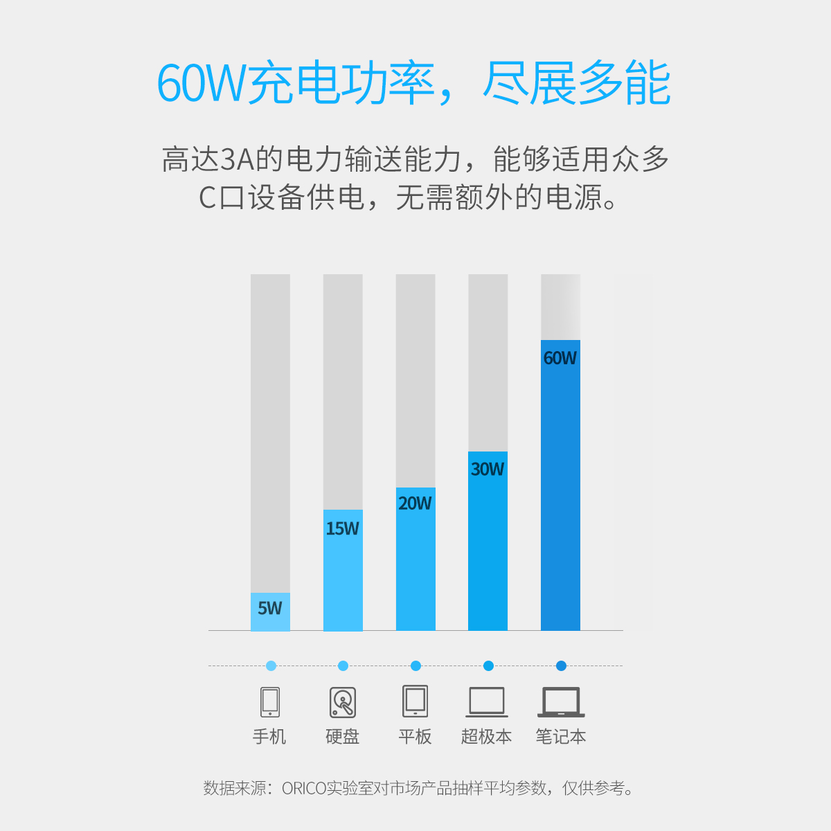 高達3A的電力輸送能力,適用眾多C口設備供電。