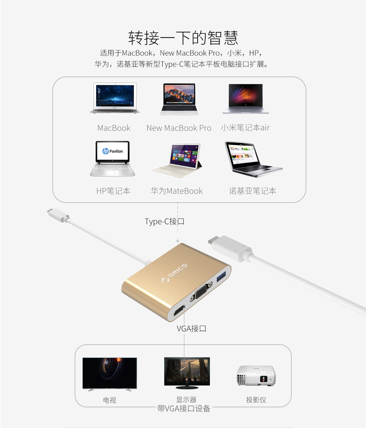 鋁合金Type-C轉Type-C/Type-A/VGA/HDMI多功能擴展塢