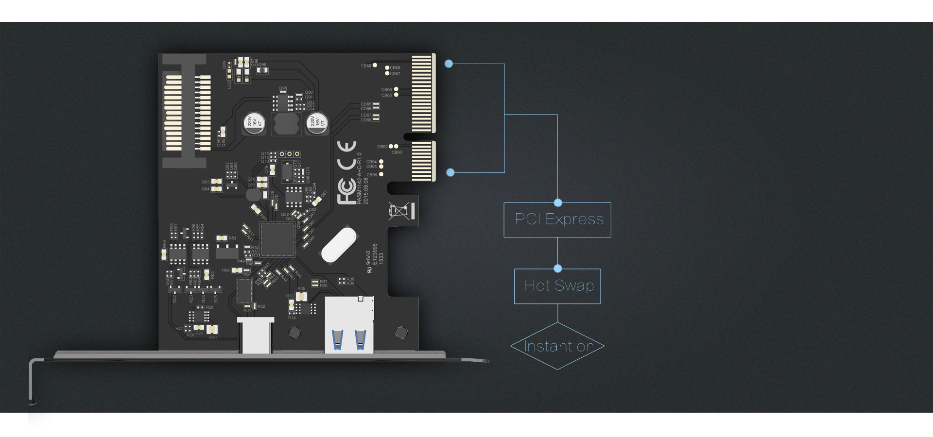 簡便安裝在機箱對應(yīng)的PCI Express插槽,擴展更為迅速,產(chǎn)品支持熱插拔,瞬間啟動,便于多個USB進行更換,在連接/斷開設(shè)備時,也無需關(guān)閉系統(tǒng)。