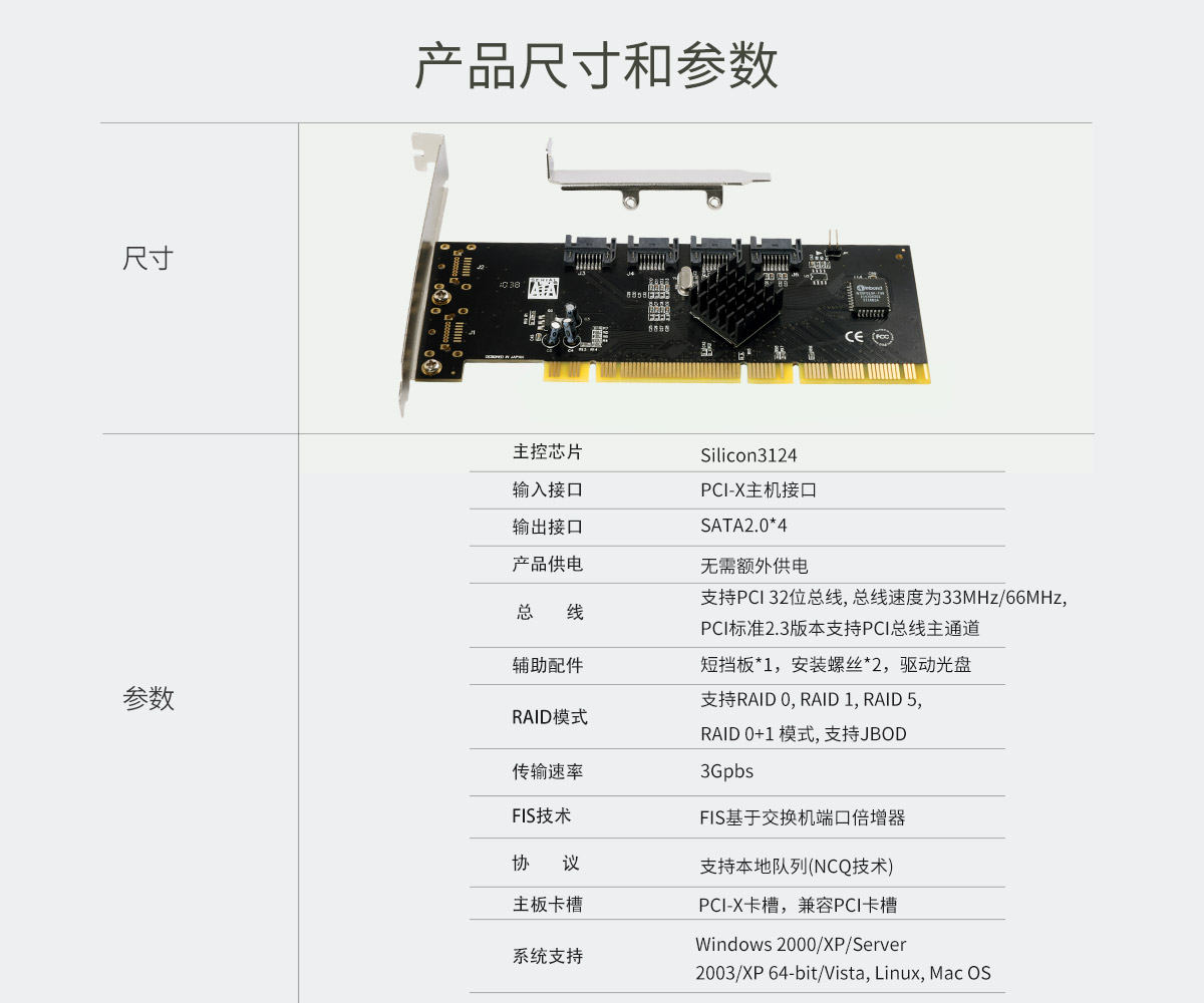 4口SATA2.0 PCI-E 擴展卡 采用Silicon 3124芯片
