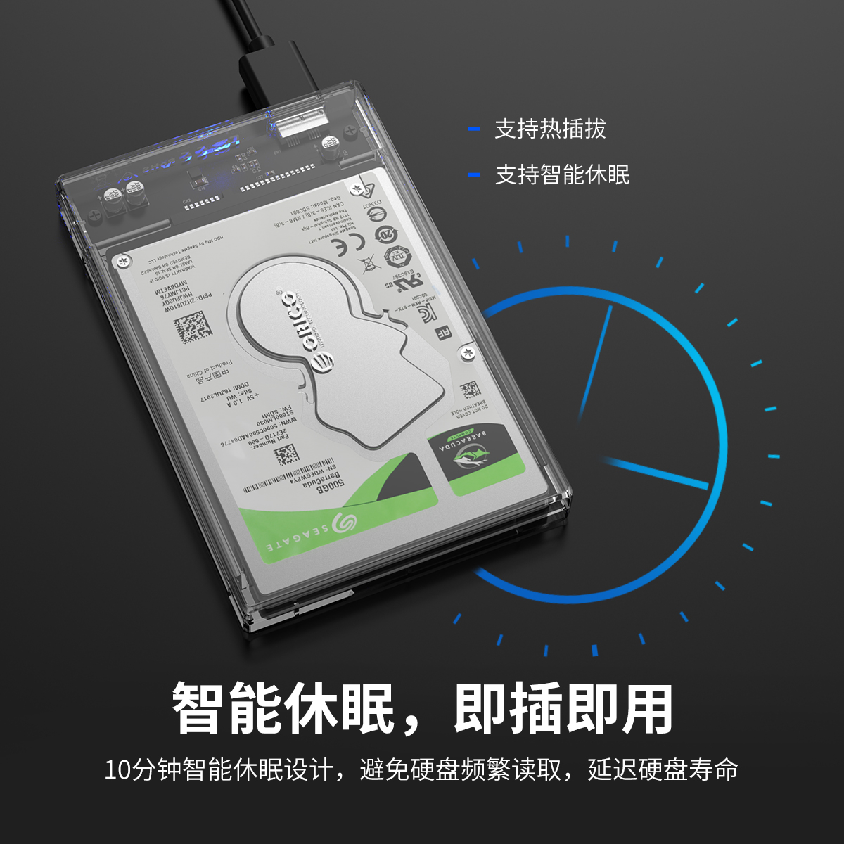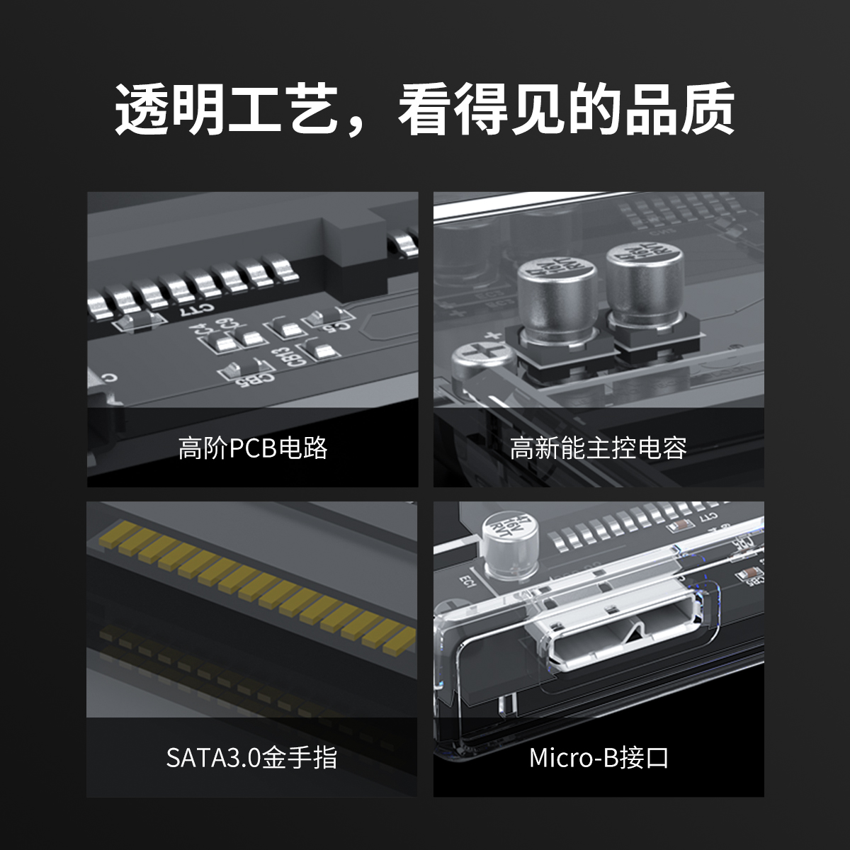 PC透明材質(zhì)2.5寸SATA USB3.0移動硬盤盒,機身全透視效果