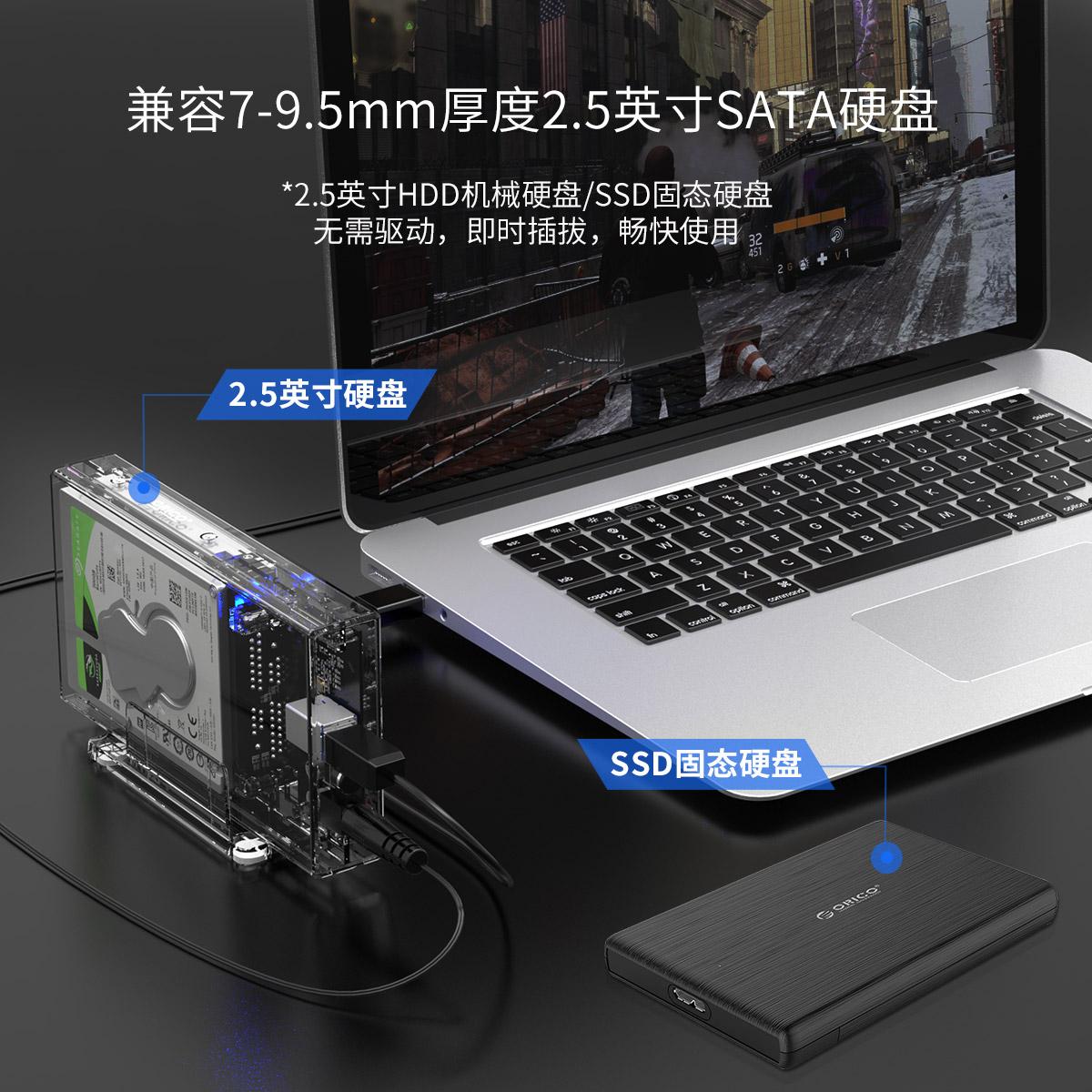支持7-9.5mm厚度的2.5寸SATA HDD和SSD