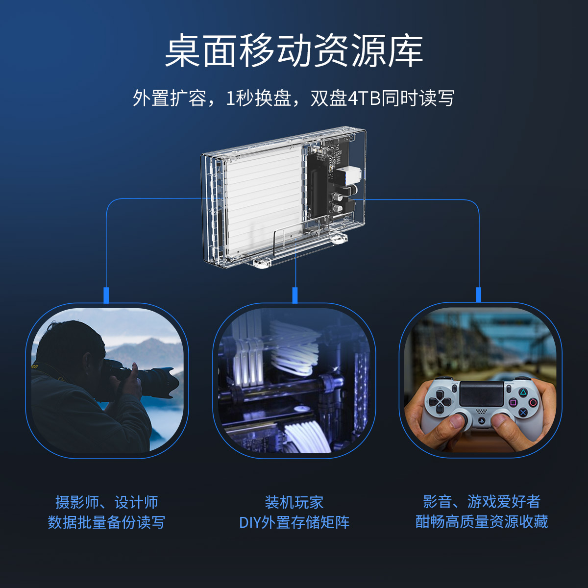 外置擴容,1秒換盤,雙盤同時讀寫