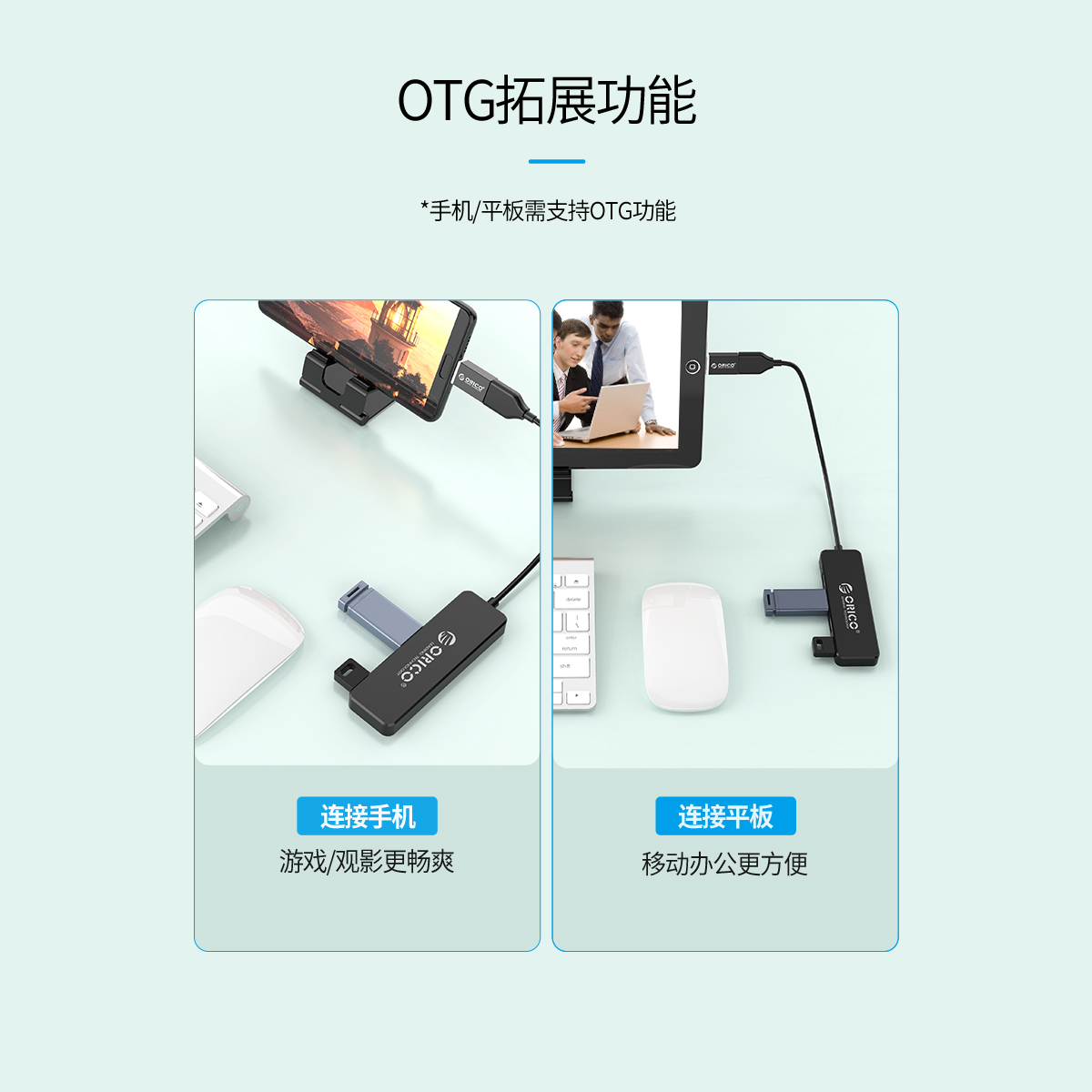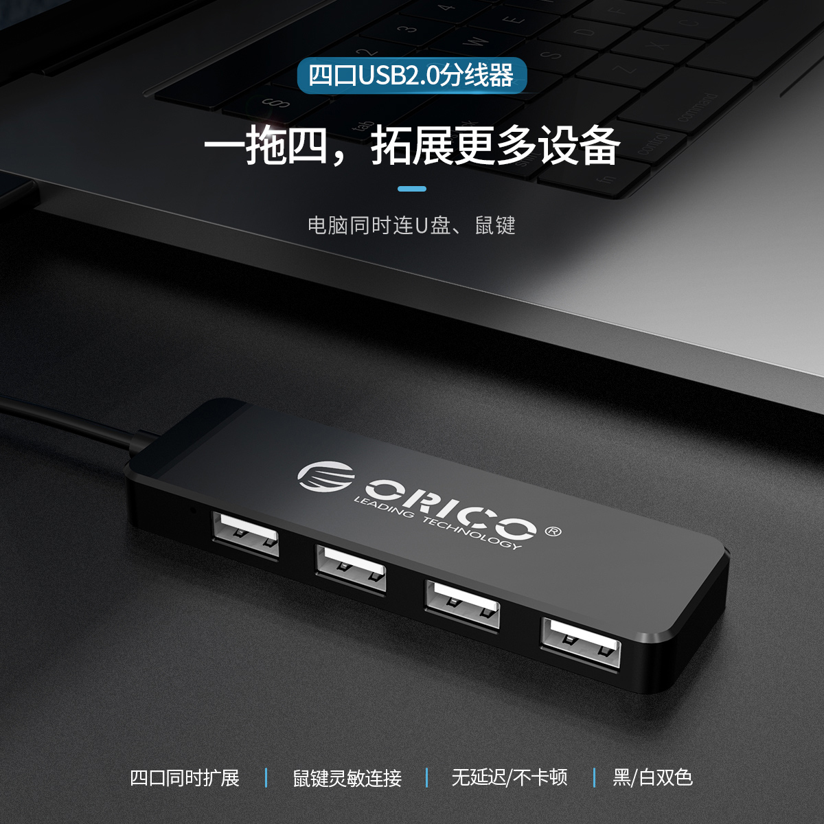 電腦/手機四口USB2.0分線器,支持OTG拓展功能