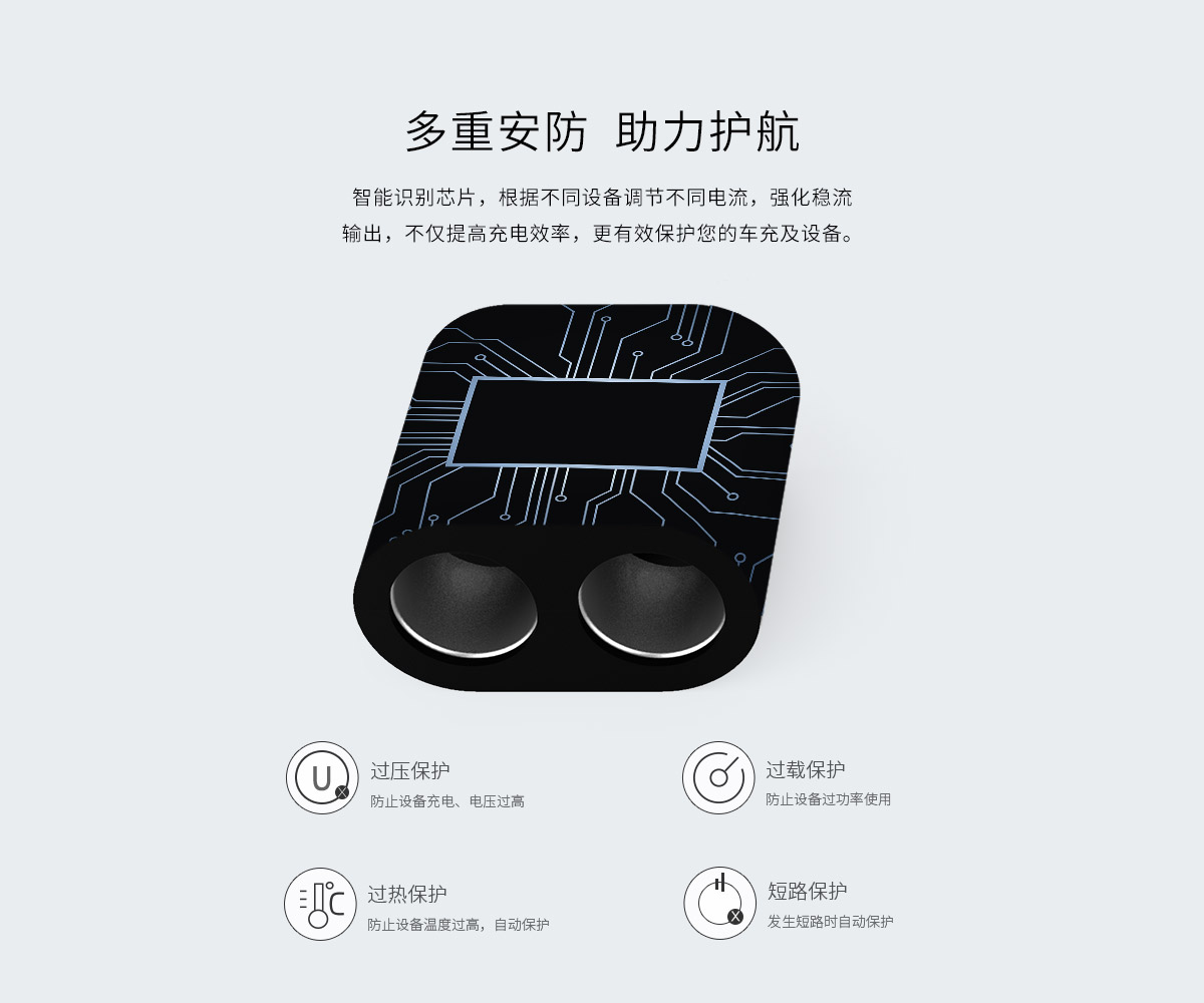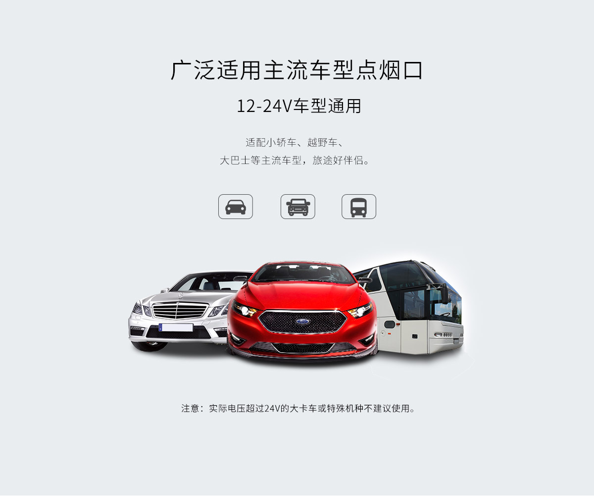 單口智能識別5V2.4A*2,總輸出5V3.1A 15.5W,2個12V-24V點(diǎn)煙口,功率120W