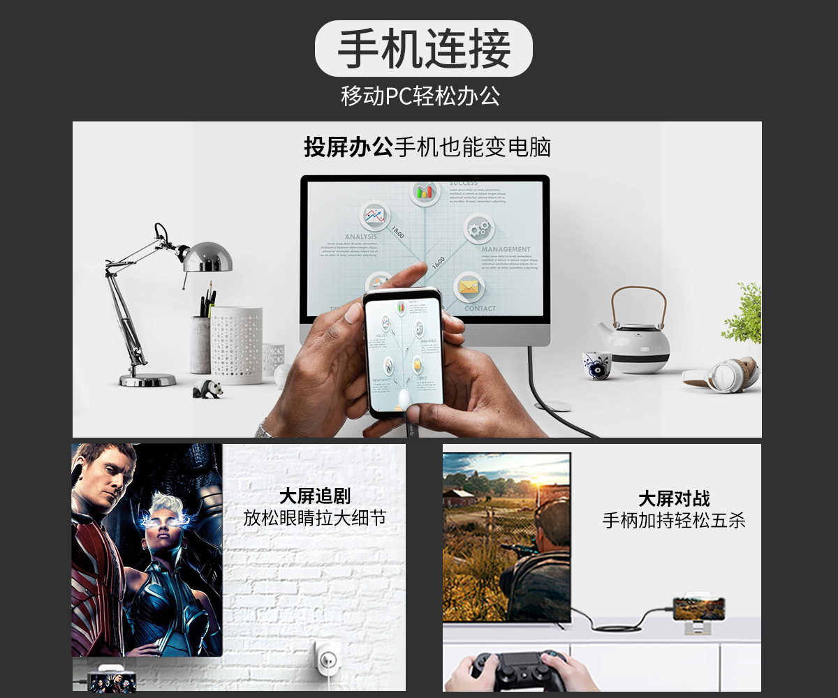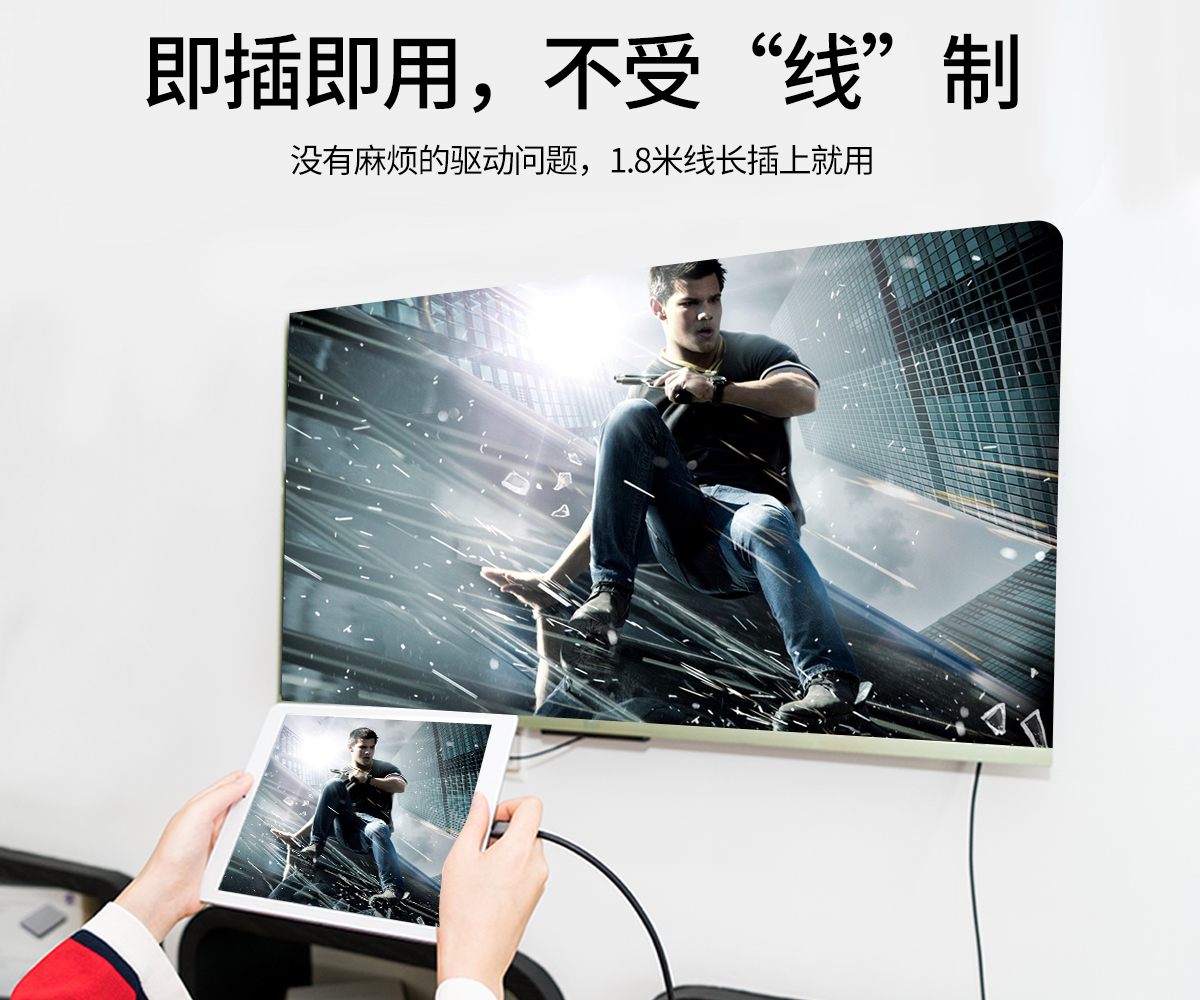 投屏辦公,同屏雙屏,即插即用,便攜,免驅(qū),耐彎折,1.8m長(zhǎng)距離擴(kuò)展,手機(jī),電腦,電視輕松同步