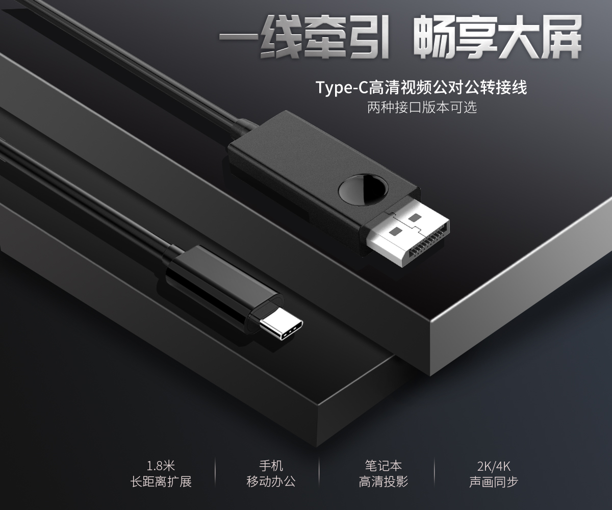 Type-C轉(zhuǎn)DP公對(duì)公1.8m高清轉(zhuǎn)接線