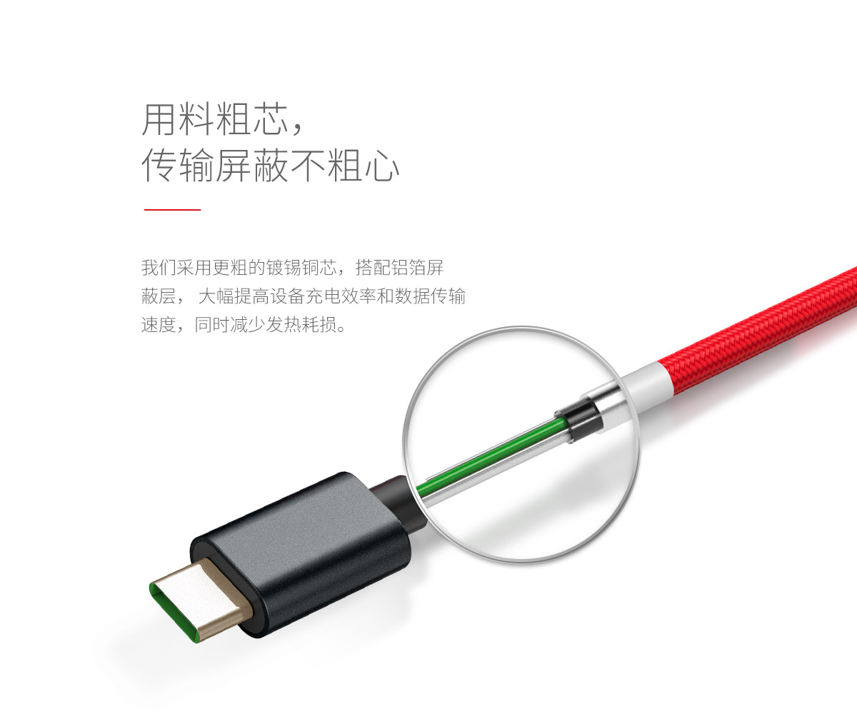 采用更粗的鍍錫銅芯,搭配鋁箔屏蔽層,大幅提高設(shè)備充電效率和數(shù)據(jù)傳輸速度