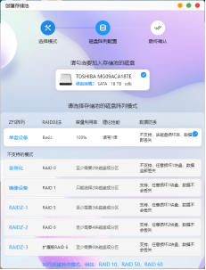 點(diǎn)擊“創(chuàng)建存儲池”,選擇硬盤和磁盤陣列模式,確認(rèn)信息無誤后輸入管理員密碼,即可完成存儲池的創(chuàng)建。