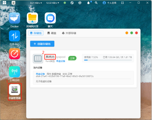 點(diǎn)擊首頁的“存儲池管理器”,進(jìn)入存儲池管理界面,點(diǎn)擊打開“系統(tǒng)池”。
